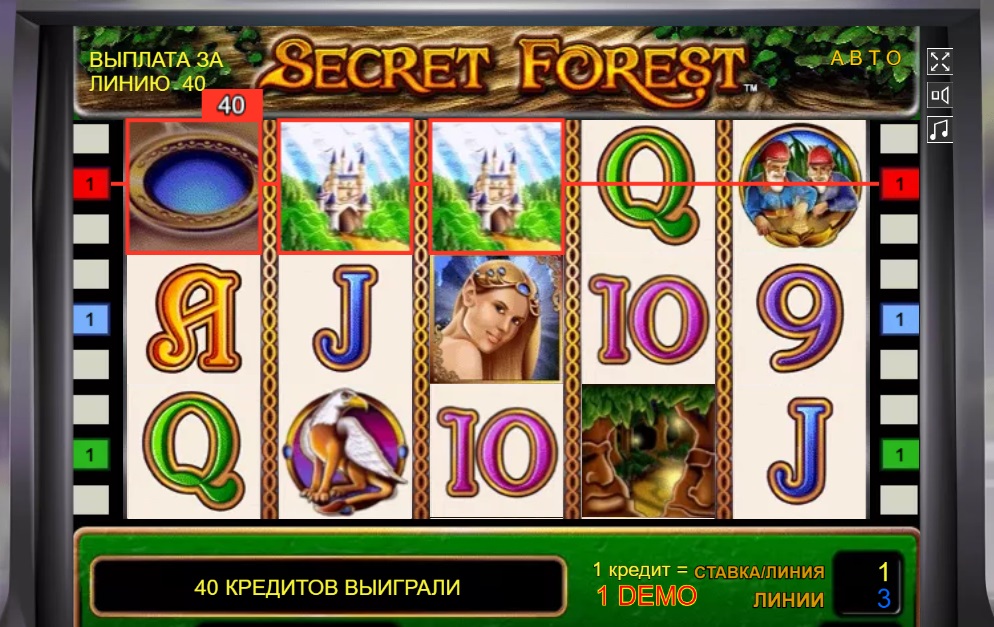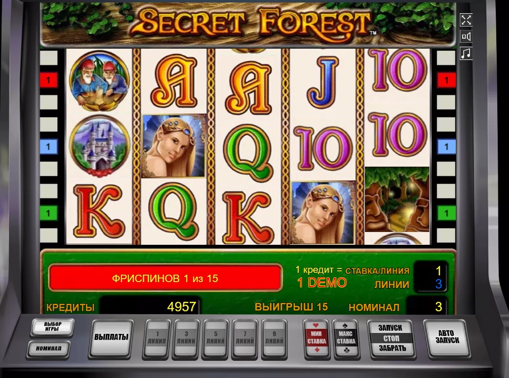 В игровой автомат Secret Forest можно играть онлайн бесплатно, выбрав демо режим. А если вы уверены в своих силах, тогда не теряйте время и выбирайте игру с реальными ставками. Игровой аппарат Сикрет Форест полон сюрпризов и многообещающих бонусных возможностей. Не упускайте возможность воспользоваться своим шансом на удачу, вращая барабаны слота.